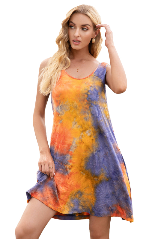 Women's Sleeveless Crewneck Pocket Tie Dye Print Tank Top Dress