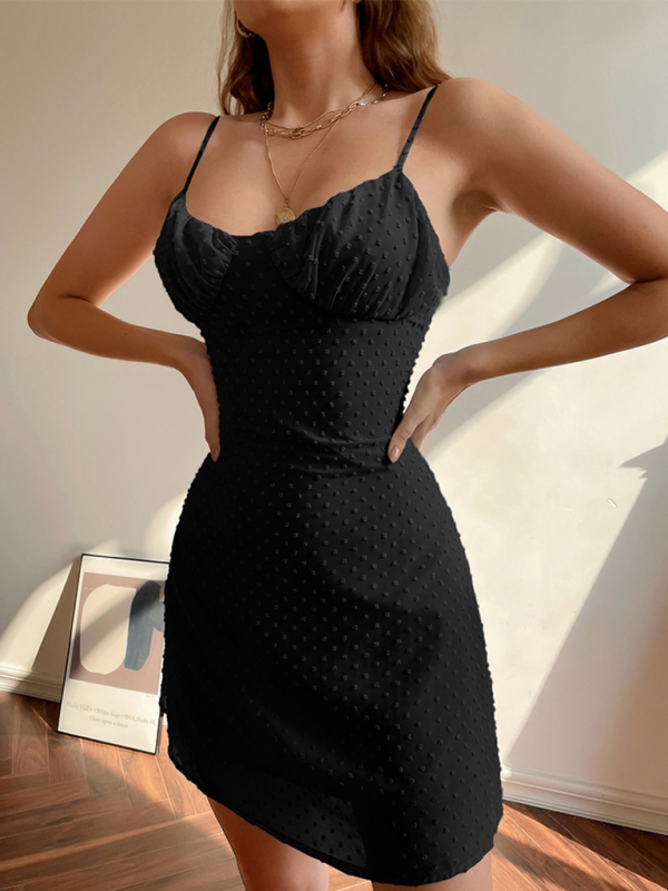 Women's drawstring backless pleated suspender Hip Wrap Dress