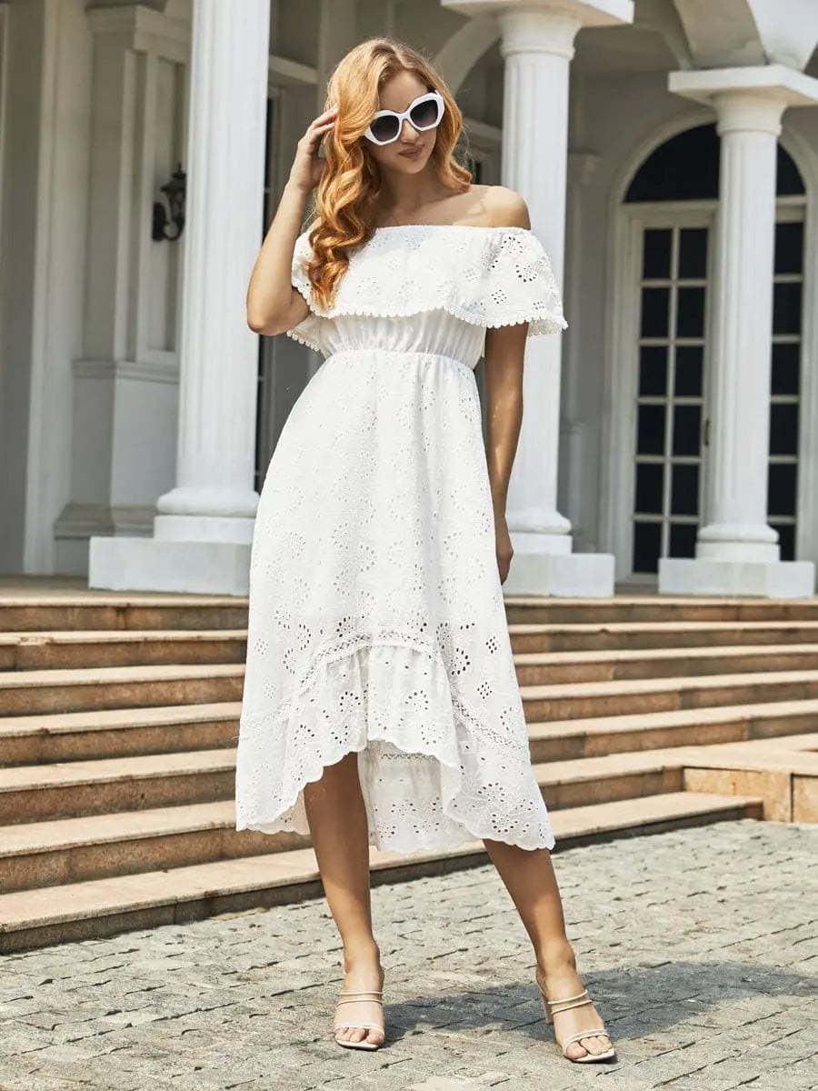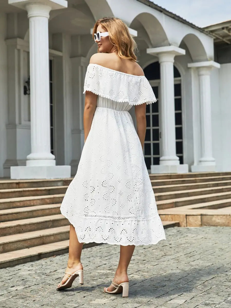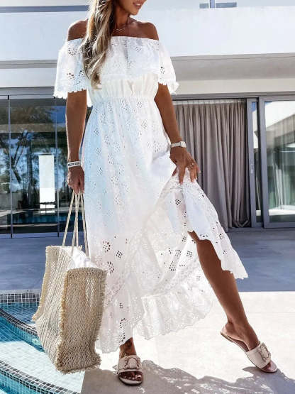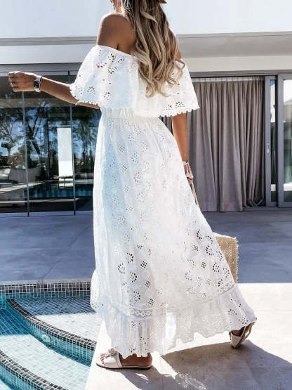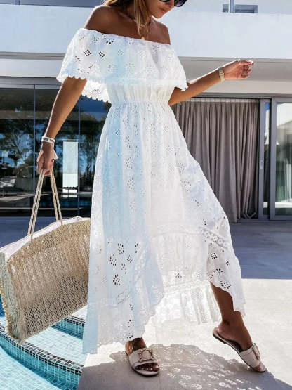 Off-Shoulder Hollow Out Lace Dress