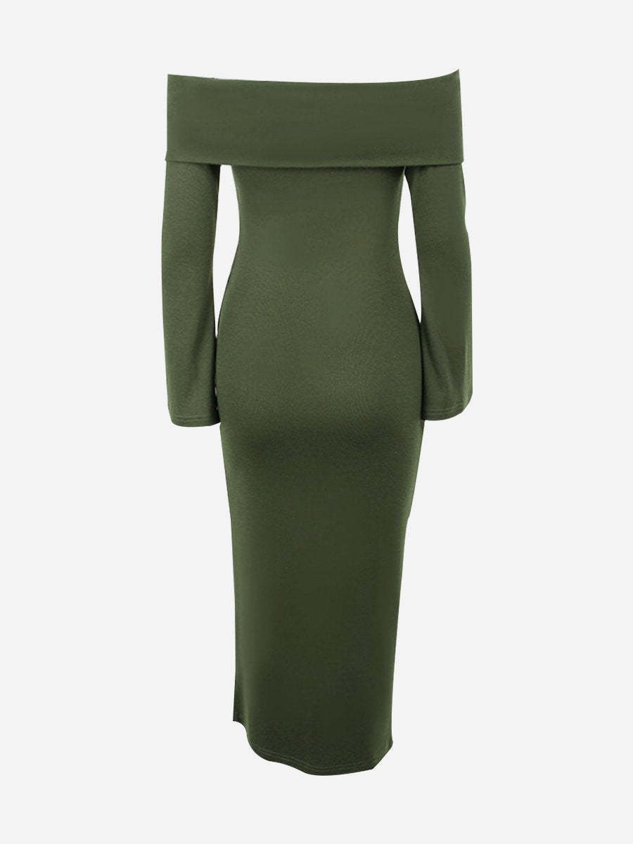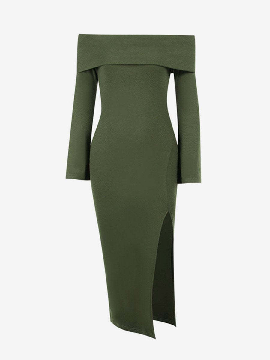 Solid Color Off Shoulder Slit Hem Midi Dress
