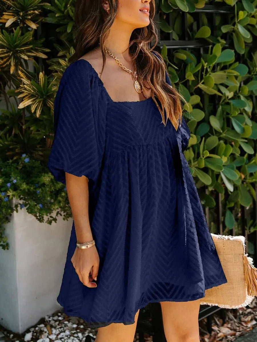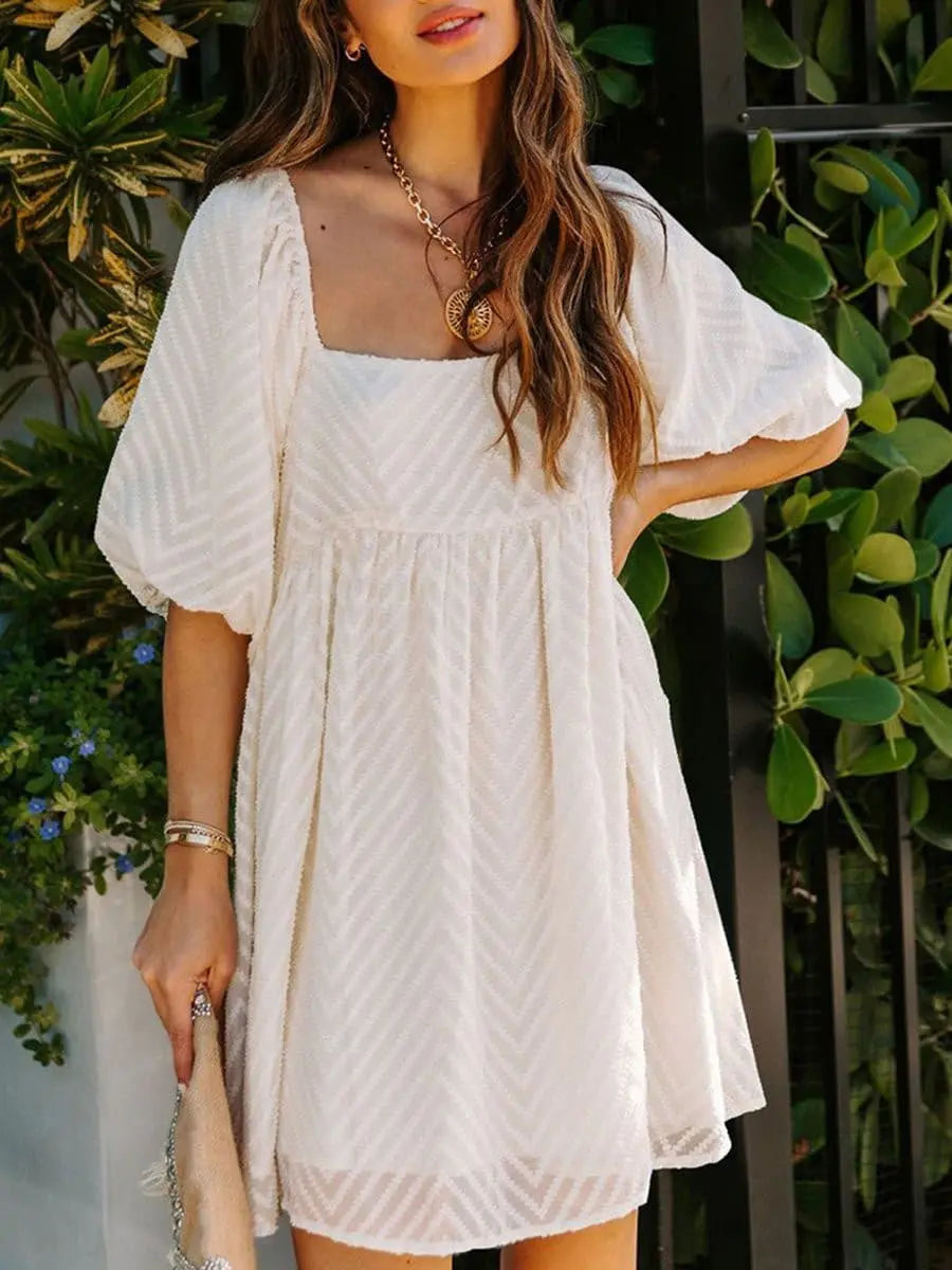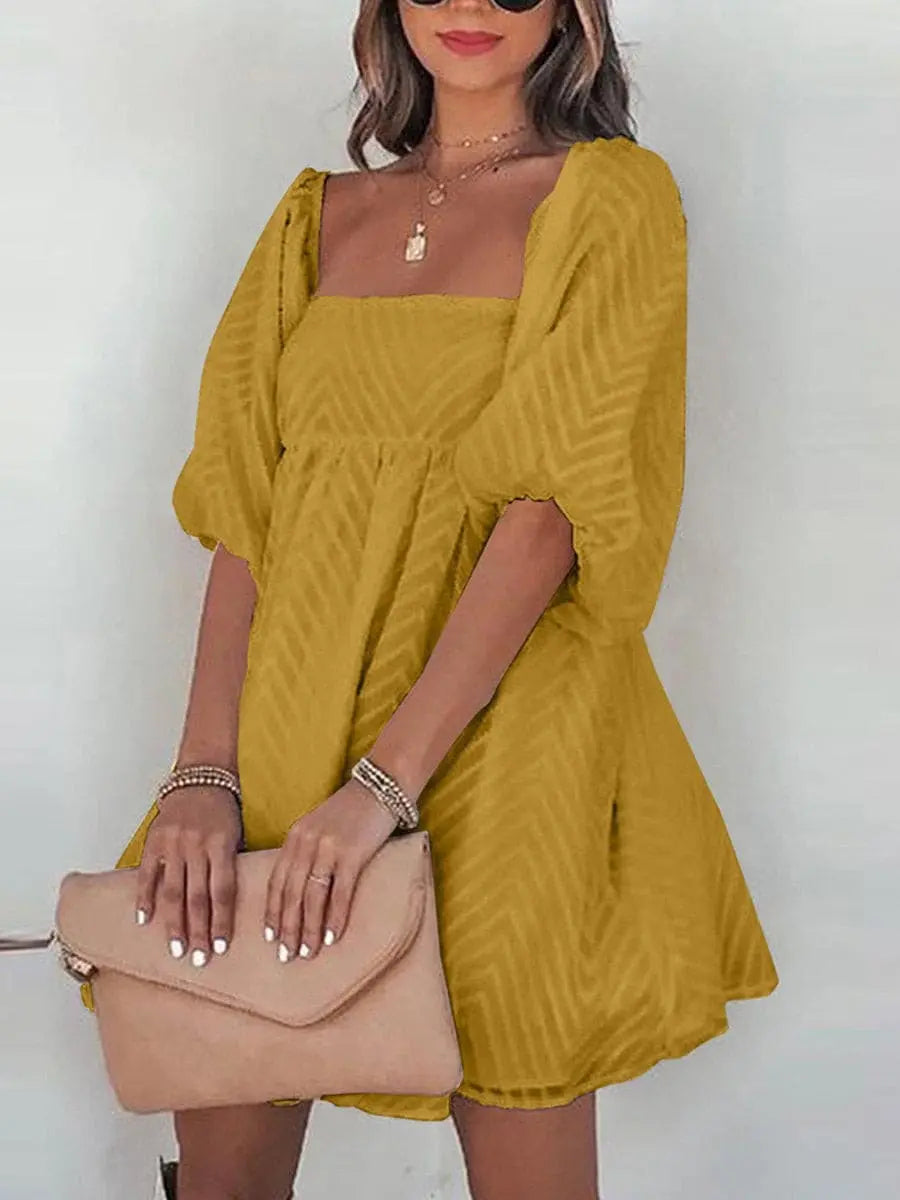 Summer Square Neck Bubble Sleeves Loose Dresses