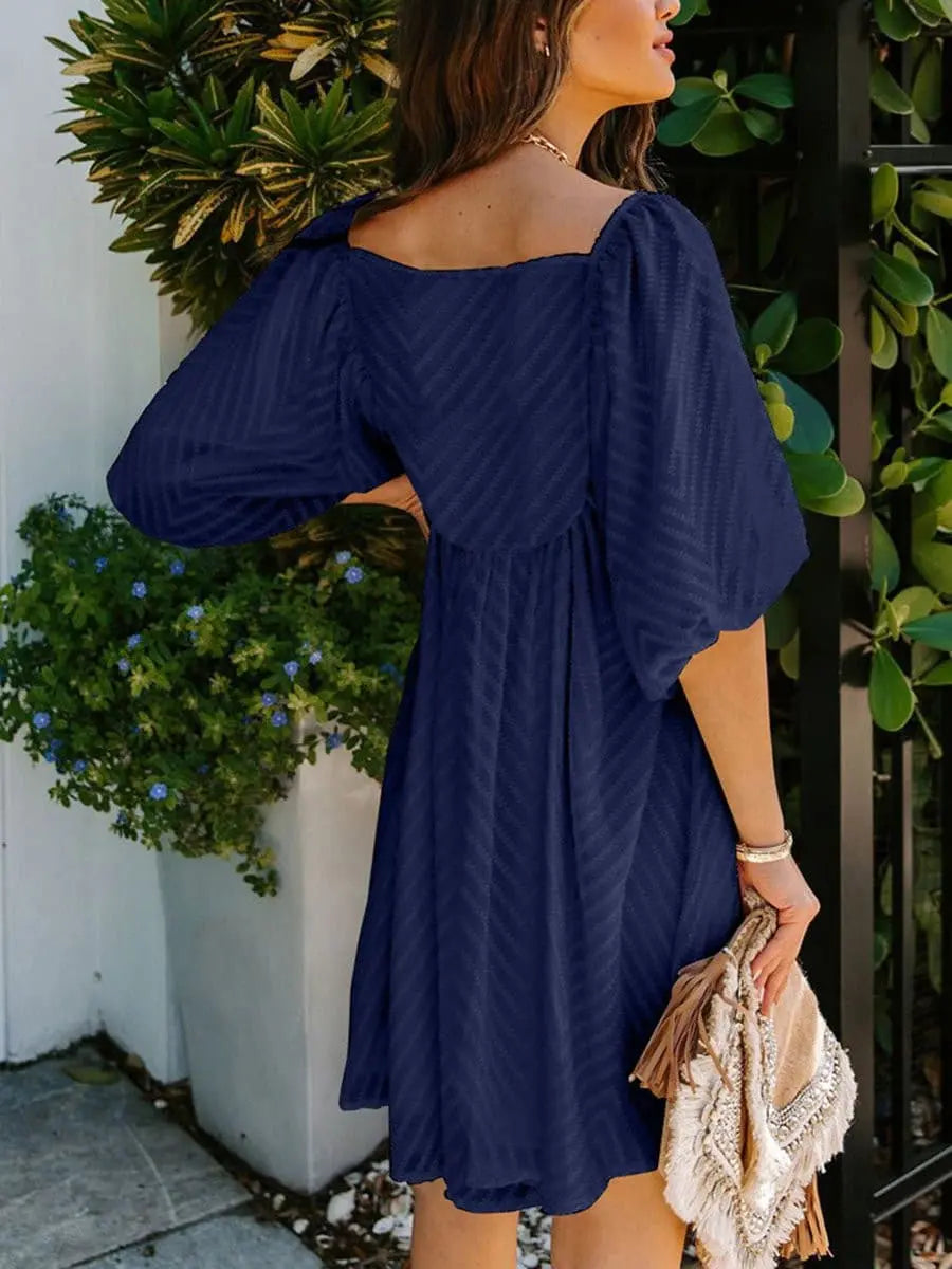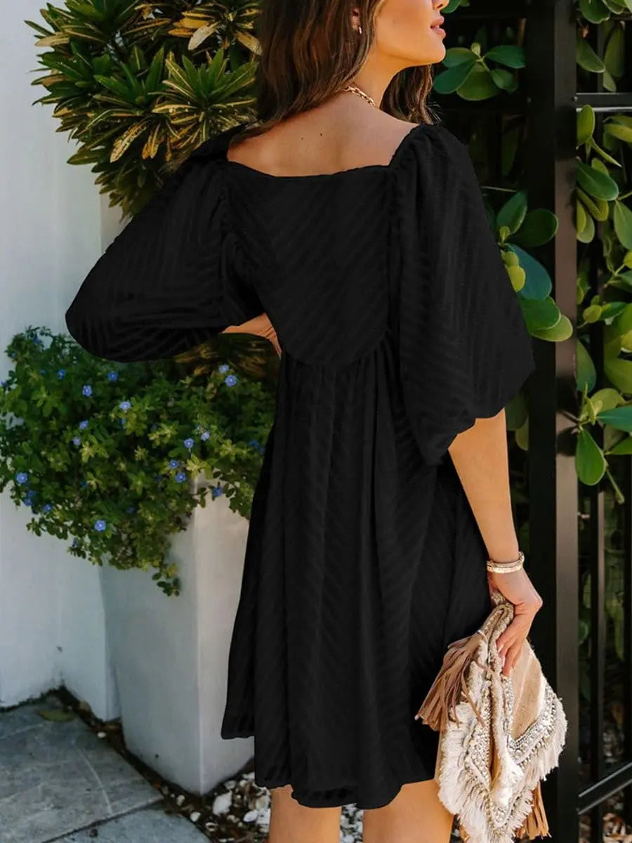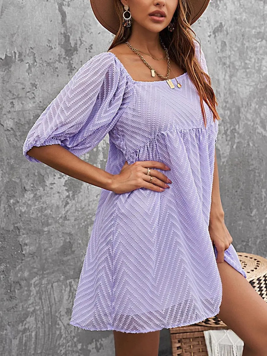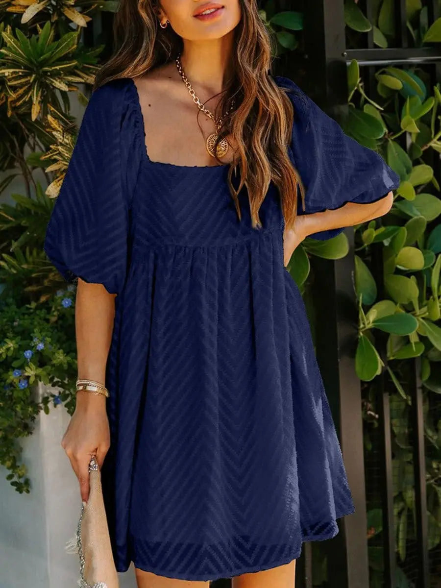 Summer Square Neck Bubble Sleeves Loose Dresses